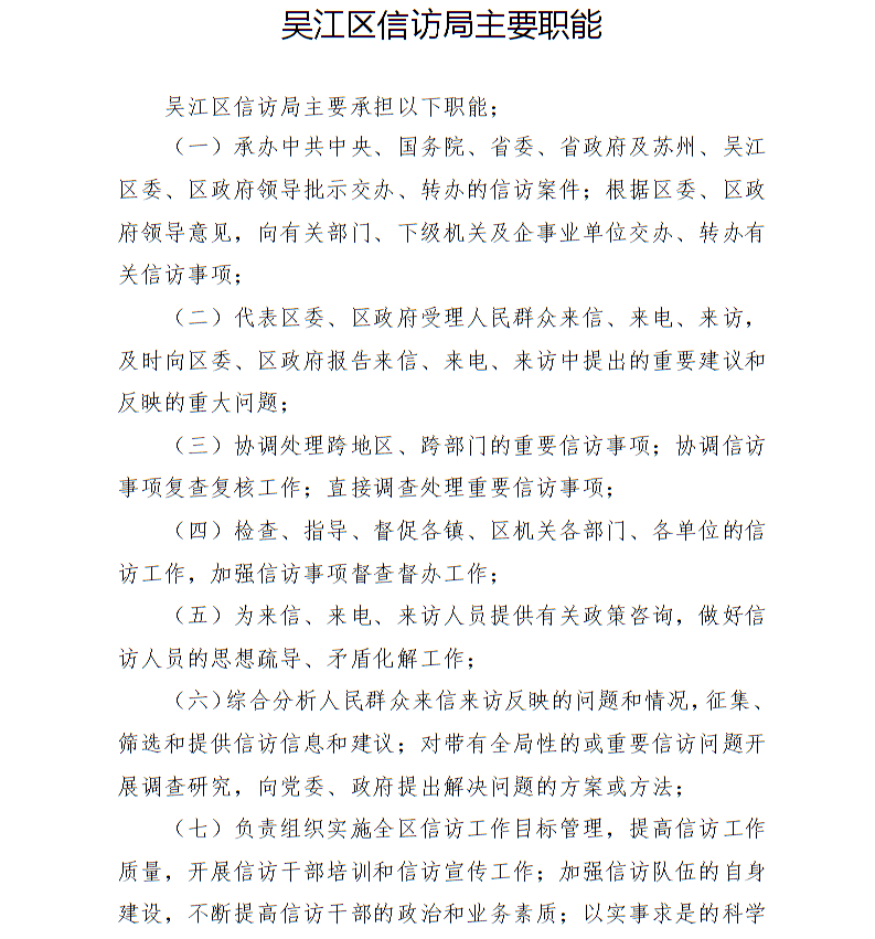 吴江区信访局主要职能