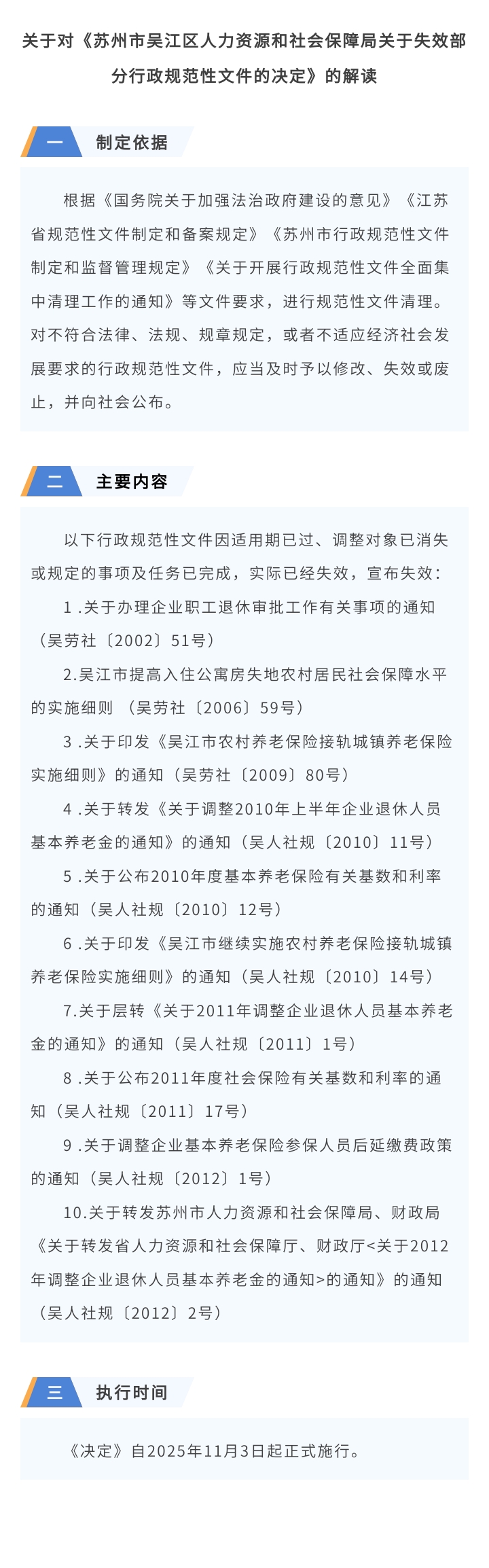 一图读懂《苏州市吴江区人力资源和社会保障局关于失效部分行政规范性文件的决定》
