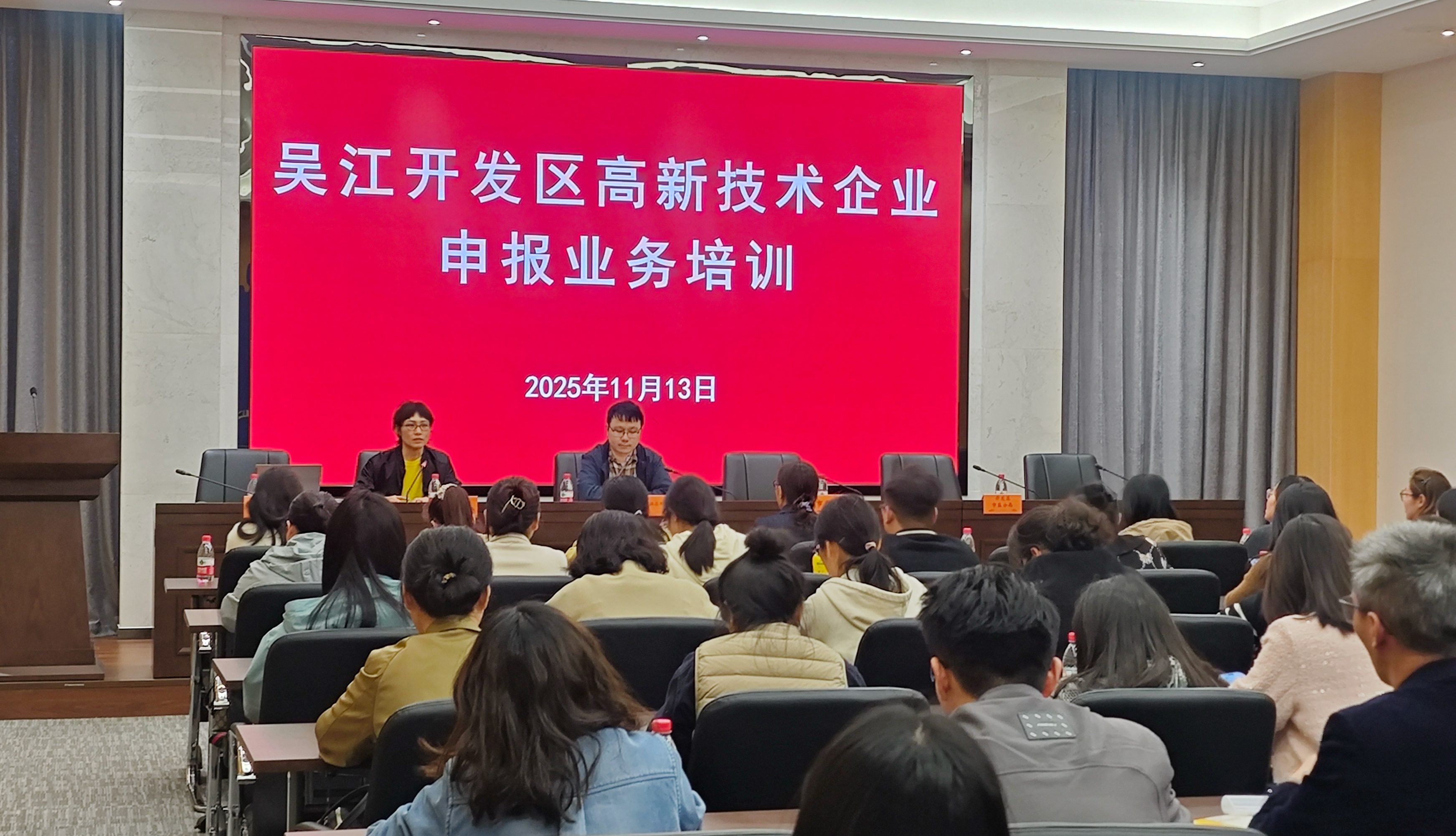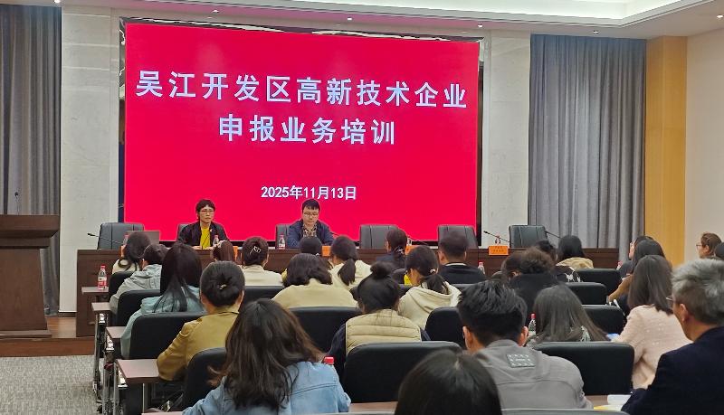 11月13日下午,由吴江开发区科技局、吴江区市场监督管理局开发区(同里)分局联合组织的2026年度高新技术企业申报首次政策宣讲会在开发区举办,开发区2026年高企申报工作由此正式启动,50多家企业参与了本次宣讲会。
