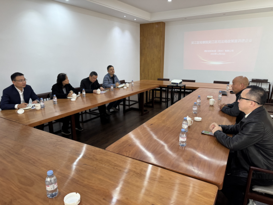 2025年11月20日下午,吴江区司法局联合吴江区检察院前往绣轩纺织科技(苏州)有限公司,开展“送政策进企业”活动。本次活动聚焦“企业合规经营与法律风险防范”,宣传解读相关政策。