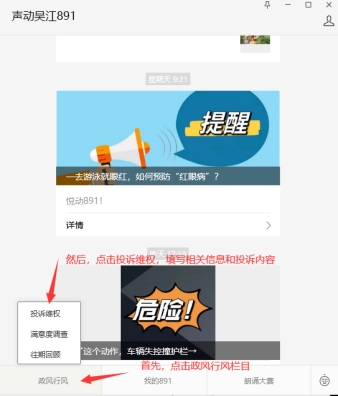 2.点击公众号左下角“政风行风”栏目,然后选择投诉维权,填写相关信息和投诉内容。为了方便及时与您联系反馈,请务必填写正确的联系电话。