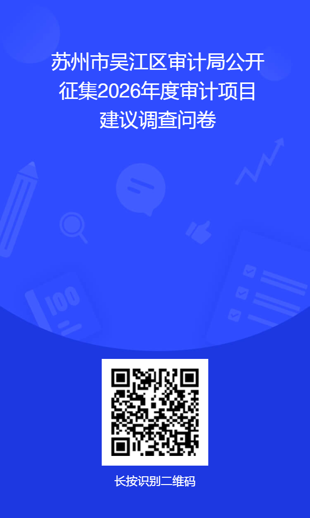 为科学制定审计项目计划,充分发挥审计在党和国家监督体系中的重要作用,以高质量审计护航吴江经济社会高质量发展。自即日起至2025年10月26日,苏州市吴江区审计局开展网络问卷调查,向社会各界公开征集2026年度审计项目计划安排的意见和建议。
