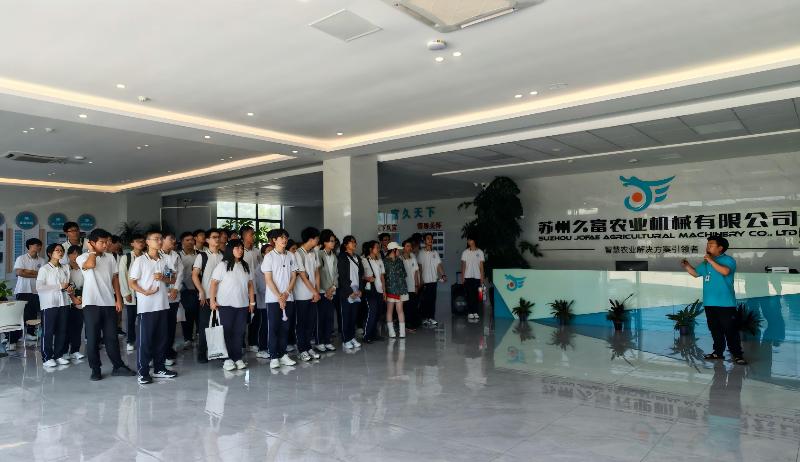 此次活动打破“坐会议室”座谈的传统模式,组织师生深入田间地头和企业车间实地观摩。在苏州久富农业机械有限公司,同学们通过近距离观察和讲解,了解了智能农机装备如何助力农业生产。走进吴江国家现代农业产业园的展示厅和稻作文化馆,大家系统感受了吴江农耕文化的传承与现代农业农村的蓬勃发展。在江苏三港农业科技发展有限公司,农业产业化、规模化的运作模式给师生们留下深刻印象。在苏州市海纳农业发展有限公司(满仓农场)的采摘体验中,同学们亲手收获果实,真切体会到劳动的乐趣和现代农业的多元魅力。