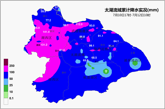 附2、太湖流域雨量实况(7月10日17时至12日10时)