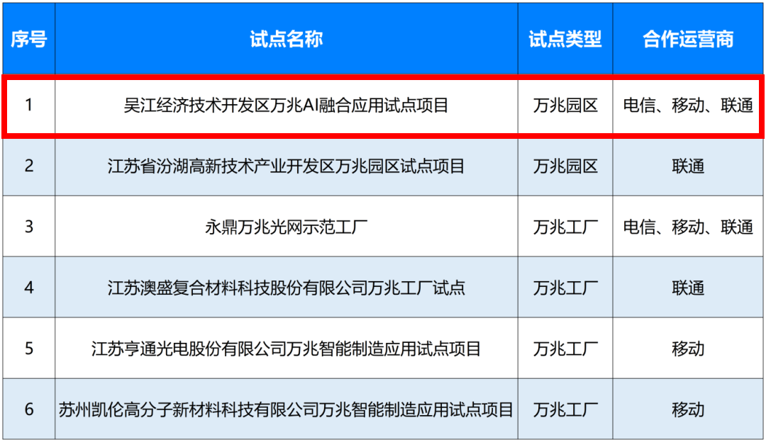 省工业和信息化厅公布了《省万兆光网试点项目名单》,吴江经济技术开发区万兆AI融合应用试点项目成功入选。