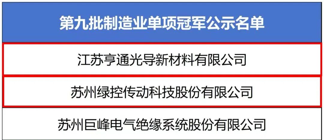 10月29日,省工信厅发布了第九批制造业单项冠军企业公示名单,吴江区3家企业成功入选,数量位居苏州大市第一,其中2家来自吴江开发区。
