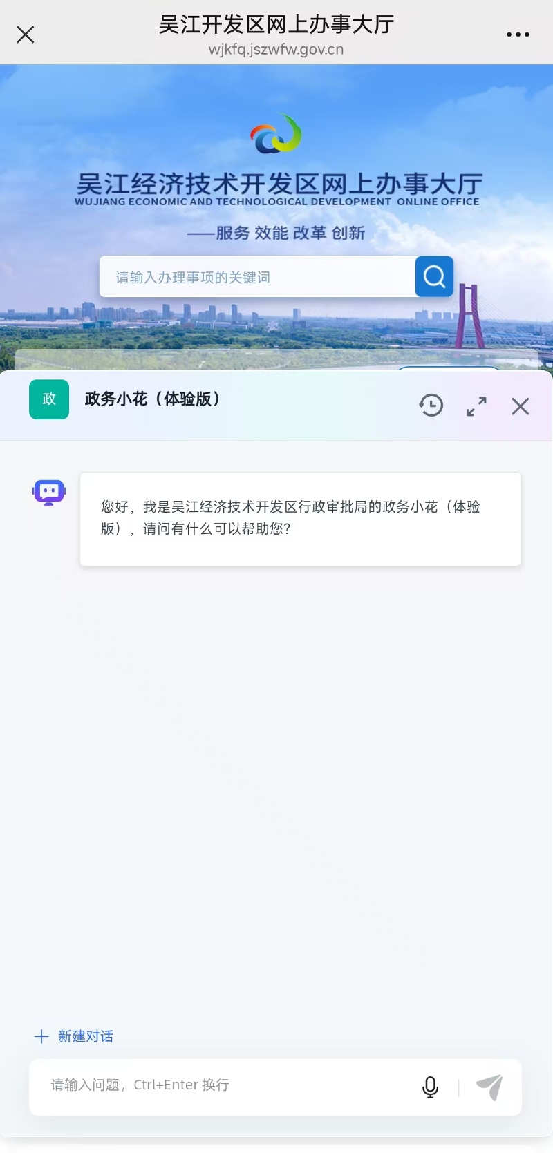 为持续深化政务服务智能化转型,拓宽企业群众咨询渠道,3月10日,吴江开发区行政审批局推出了“政务小花”AI机器人(体验版),旨在以“AI+政务”应用场景匹配“精准答疑+智慧导办”新模式,延伸政务服务的广度与深度。“政务小花”接入了DeepSeek、Qwen-Max、科大讯飞等先进大语言模型和语音识别模型,是吴江开发区行政审批局主动求变、强化赋能的生动探索。