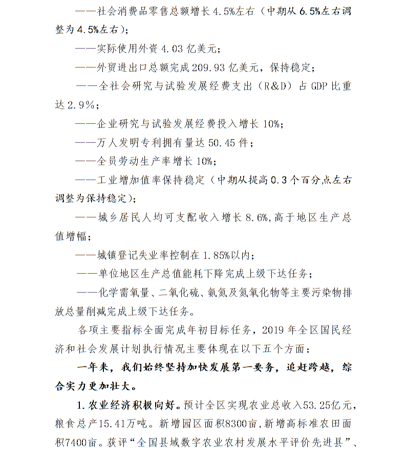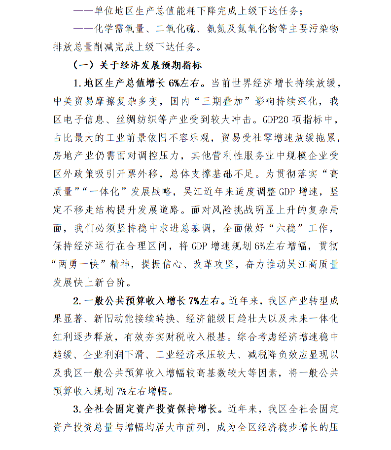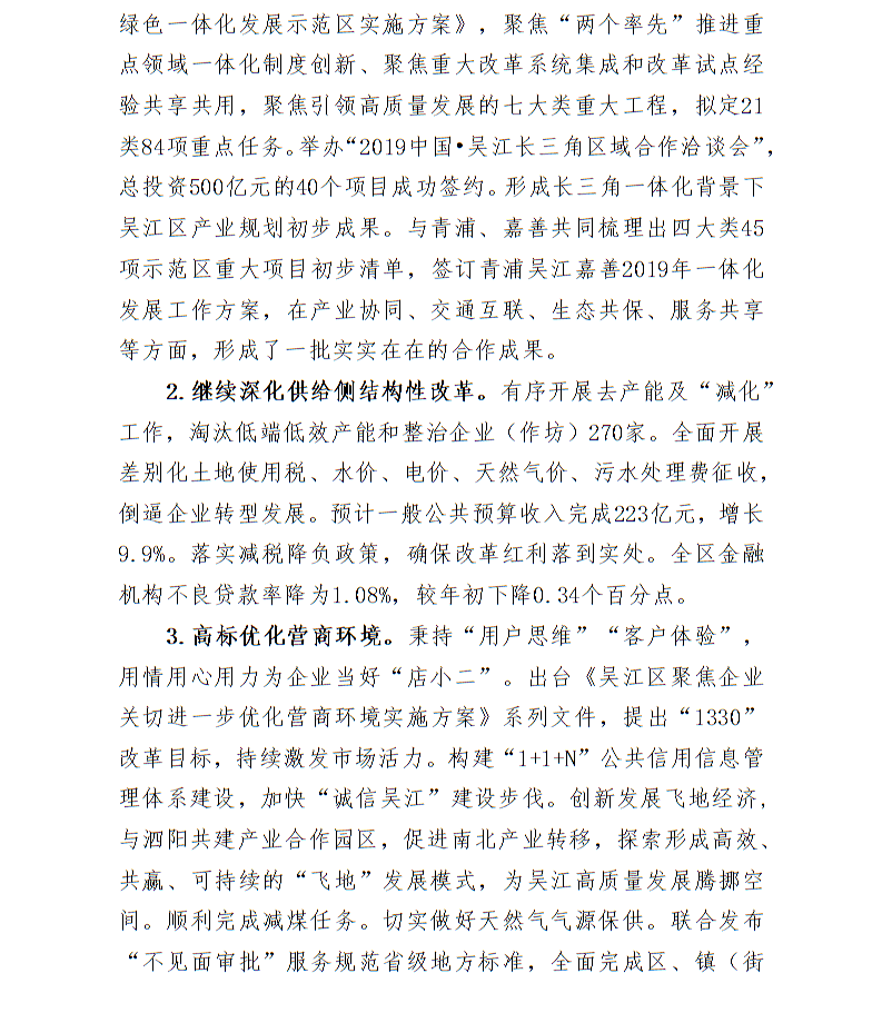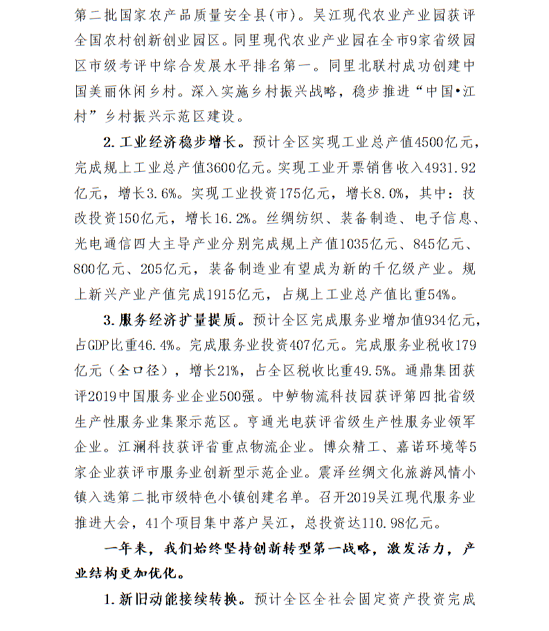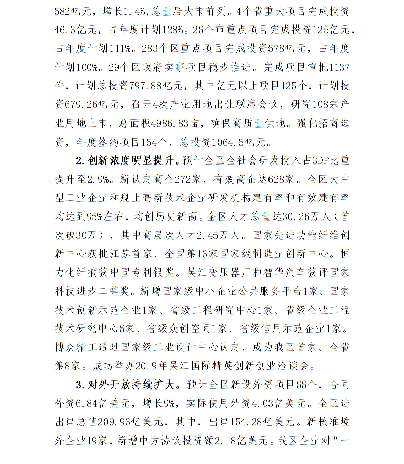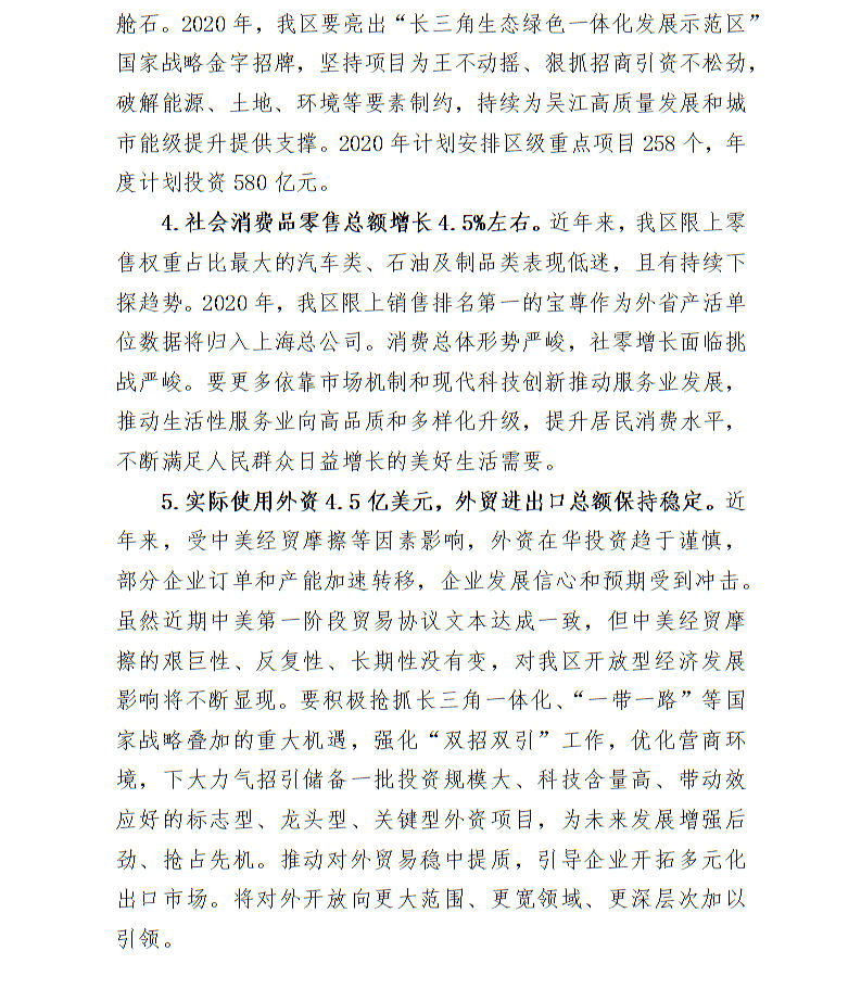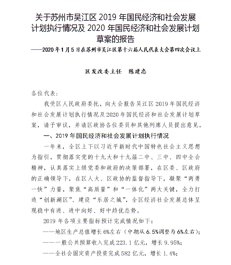 关于苏州市吴江区2019年国民经济和社会发展计划执行情况及2020年国民经济和社会发展计划草案的报告