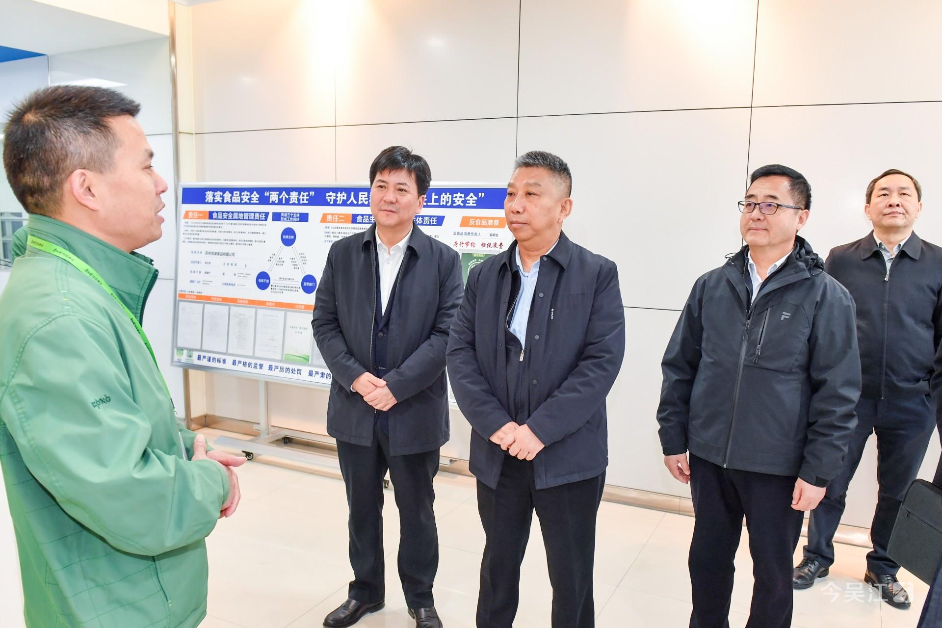 孙会川一行首先前往吴江区杨嘉墀实验学校,来到食堂烹调区、蔬菜加工间、粮油区等地,重点检查了校园餐风险分级管控、日常巡查记录等工作,详细询问食材采购、配送以及餐食制作、追溯等关键环节的监管措施,对学校实施“日管控、周排查、月调度”机制给予高度评价。孙会川表示,校园餐事关学生健康成长,是食品安全的重中之重,吴江在校园餐的监管方面,以安全生产“六化”建设为牵引,突出食材采购、配送、贮存、加工制作等全过程、全链条,且在全市范围内率先试点食品安全可视化智慧监管系统,真正把校园餐做成安全餐、营养餐,在创新食品安全监管体系方面积累了先进经验,值得推广学习。