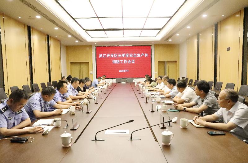 9月8日,吴江开发区召开三季度安全生产和消防工作会议,贯彻落实市、区相关会议精神,部署下阶段重点工作。吴江开发区党工委委员、管委会副主任沈建兴出席会议并讲话。