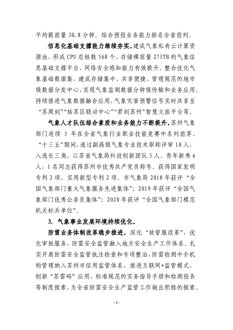 市政府办公室关于印发苏州市“十四五”气象发展规划的通知